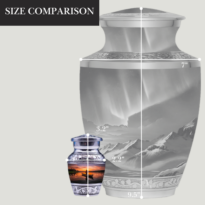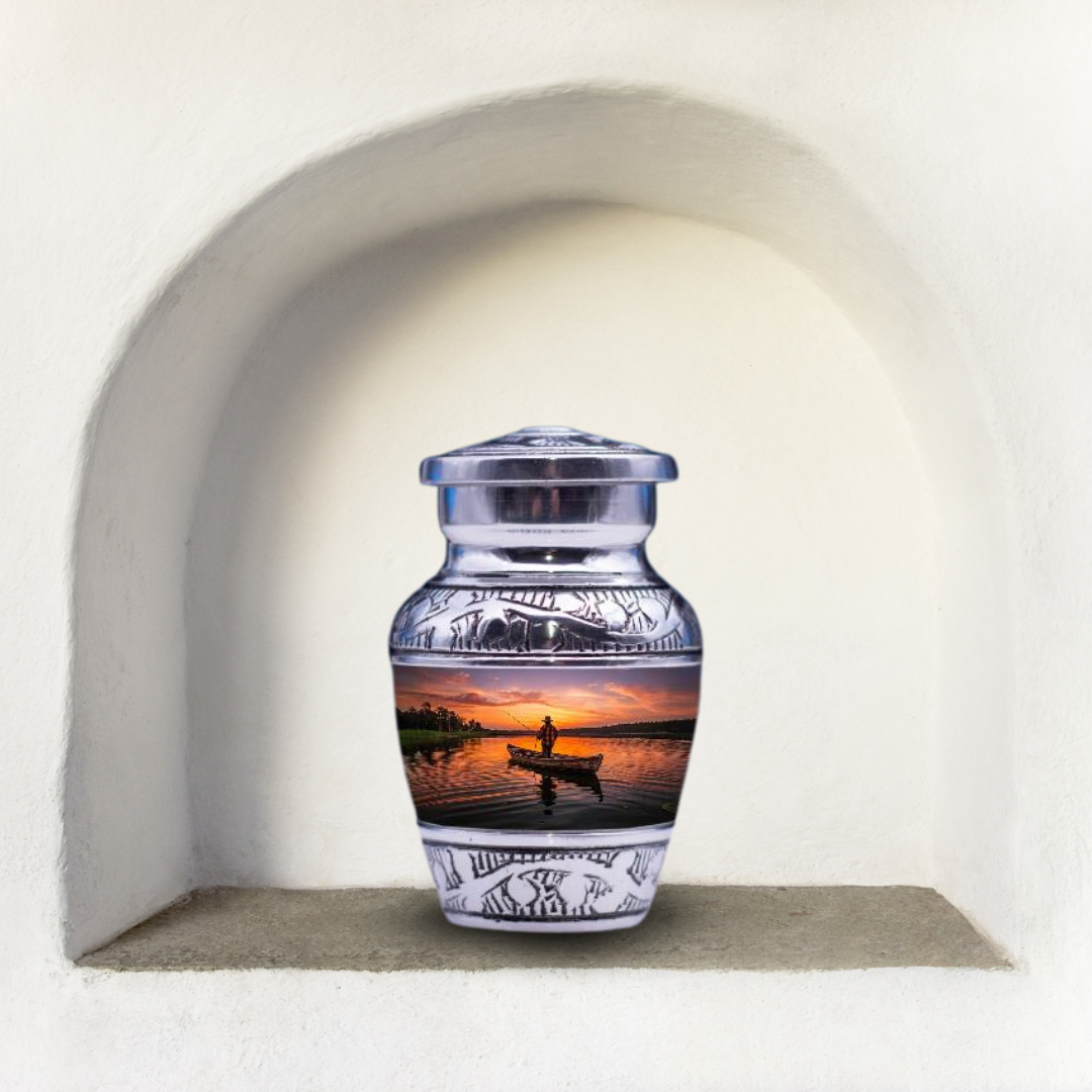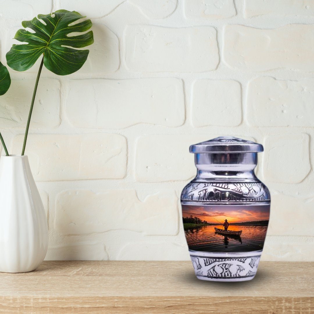 A keepsake urn is a small urn that holds only a portion of a loved one’s ashes. Families use them to share ashes among relatives, keep a personal memento, or honor someone in multiple places. They’re usually palm-sized (3 cubic inches) and come in many designs to reflect personal meaning.