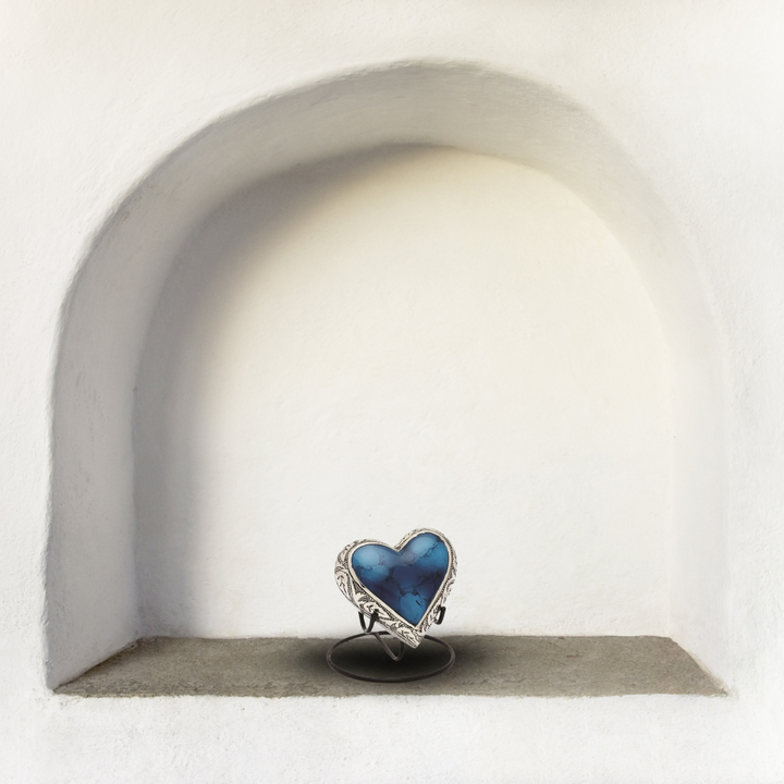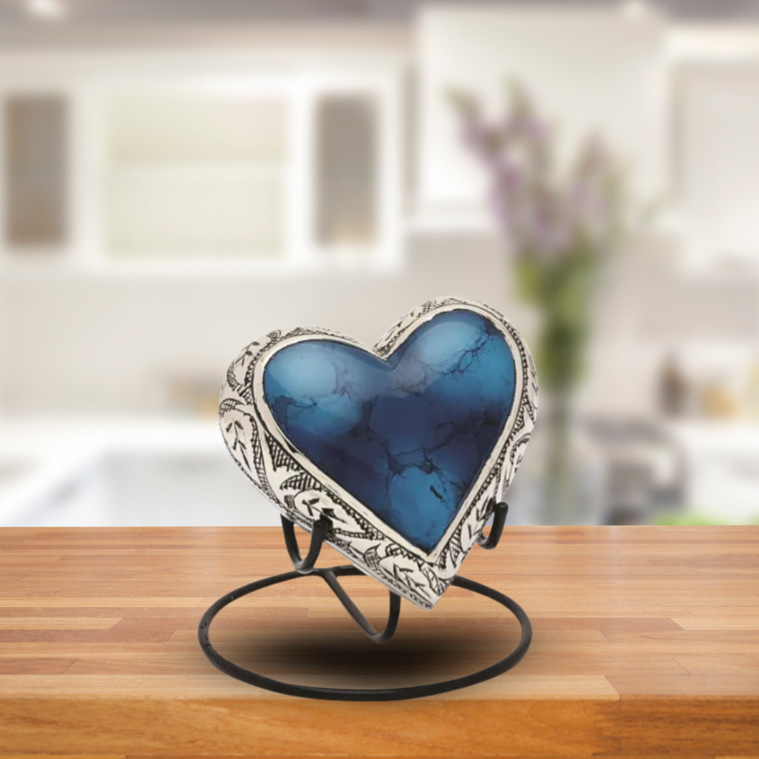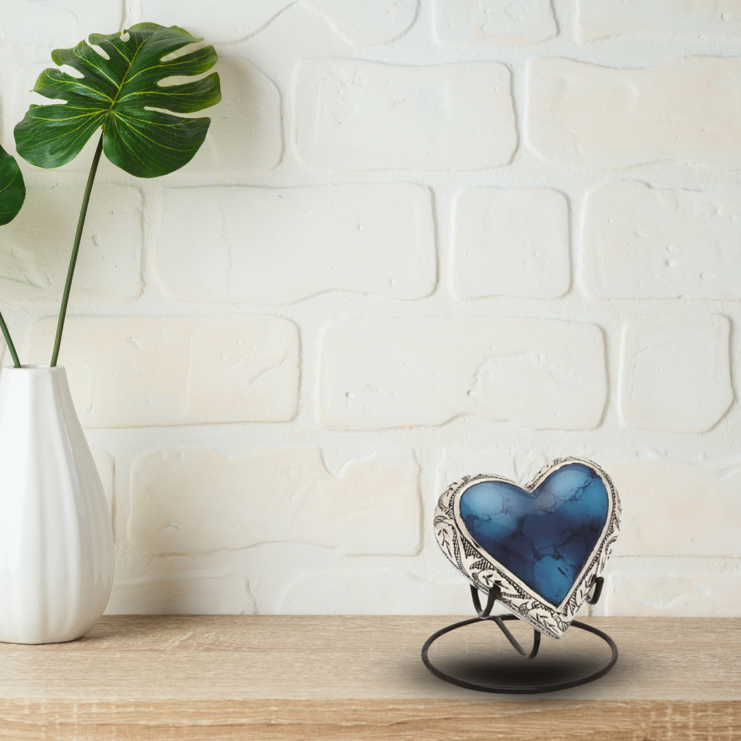 Grecian Blue Keepsake Heart features the Grecian Blue design on a keepsake heart. Stand is included