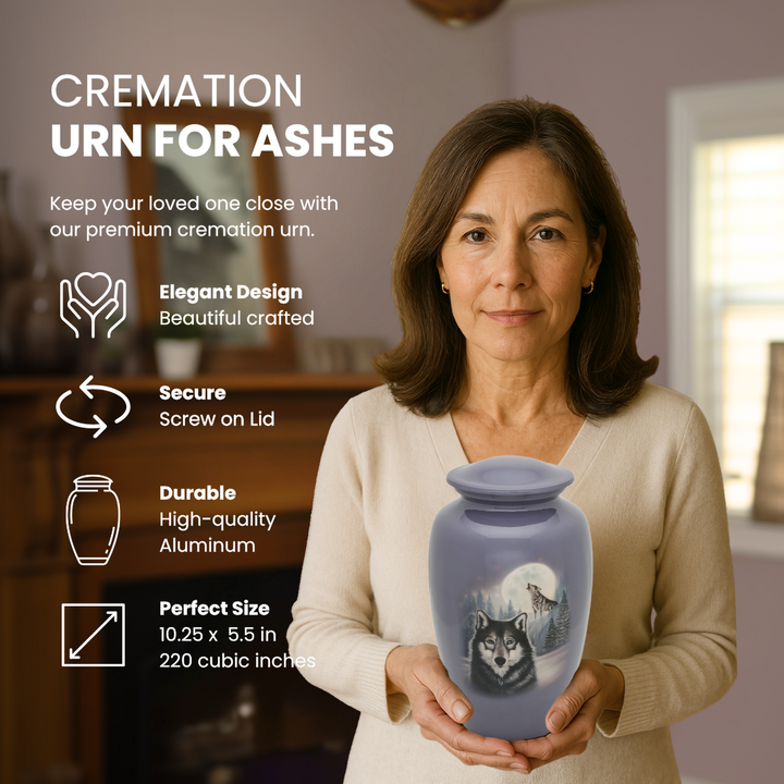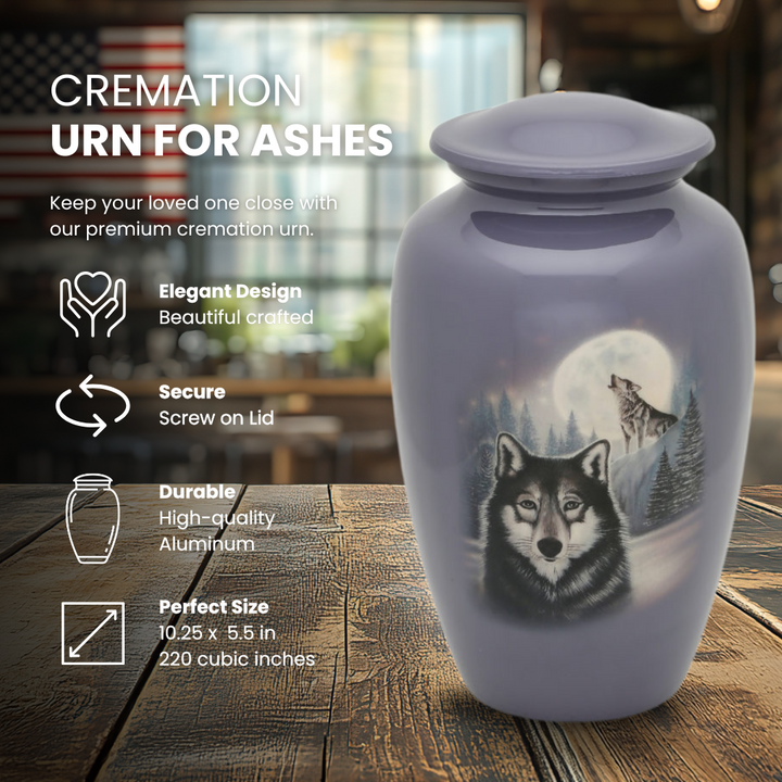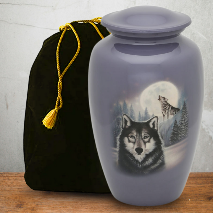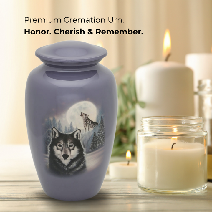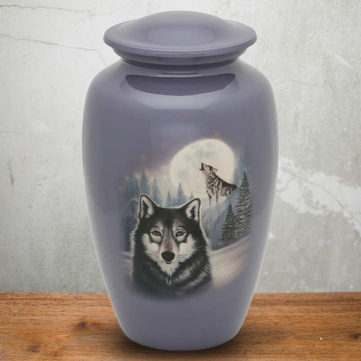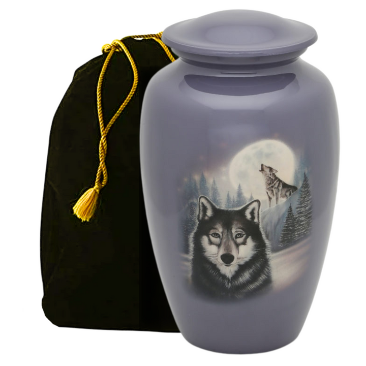 Moonlit Wolf Adult Urn features an exclusive design by a US based artist.