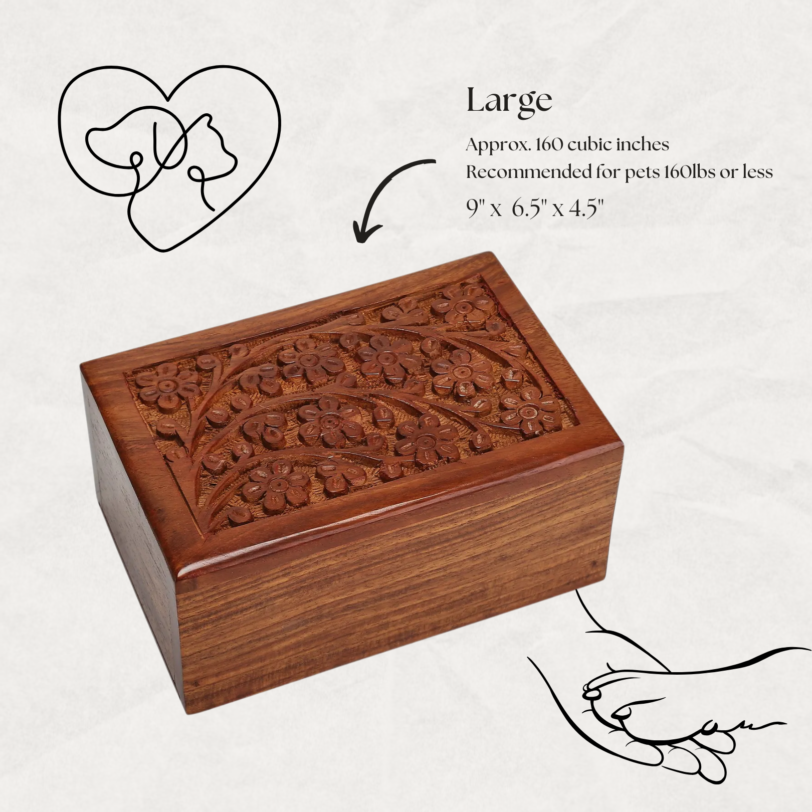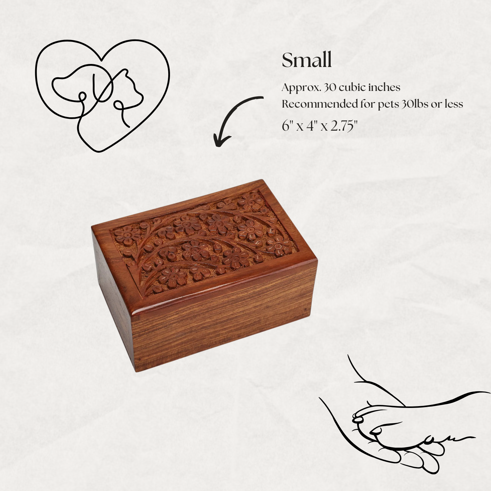 Wood Pet Cremation Urn - Small, Medium, Large